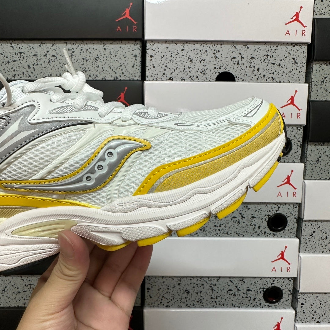 Découvrez la Saucony ProGrid Omni 9, une silhouette emblématique lancée en 2010, qui revient aujourd’hui pour celles et ceux qui savent garder une longueur d’avance. À l’époque déjà en avance sur son temps, elle s’impose désormais comme une pièce rétro-technique incontournable, à la croisée du confort moderne et d’une esthétique affûtée. Son design repose sur une cage en matière caoutchoutée qui renforce la stabilité et la durabilité à chaque foulée. La technologie GRID assure un amorti supérieur en répartissant uniformément les chocs, offrant un soutien optimal sans compromis. Pensée pour rester respirante même dans l’effort, sa tige en mesh ouvert permet à l’air de circuler librement pour un confort constant. Une paire technique et racée, qui traverse les années sans perdre de sa pertinence.
